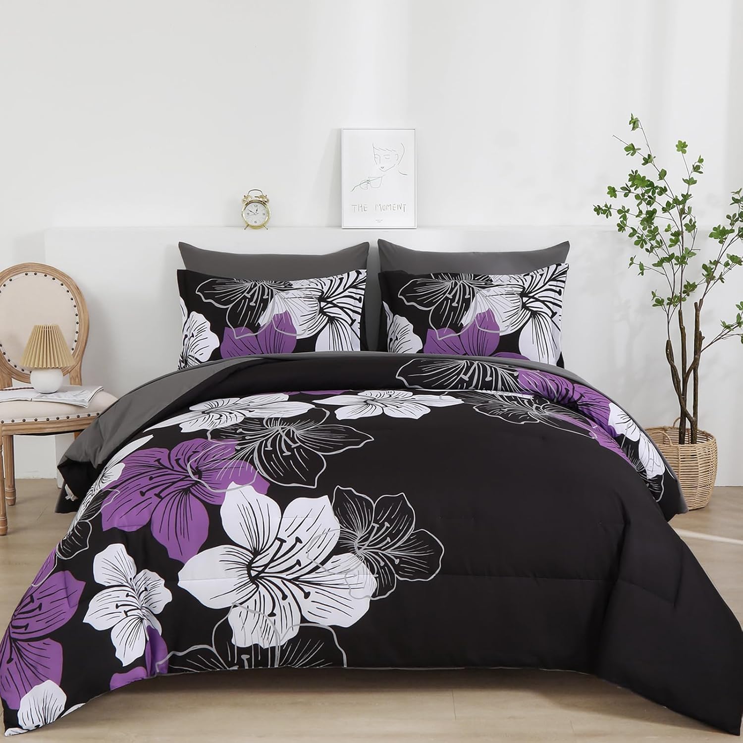 This complete bedding set includes everything you need to transform your bedroom into a tranquil oasis. The set features a beautiful floral comforter that adds a touch of sophistication to any decor, along with matching pillow shams and decorative pillows to enhance the overall look.