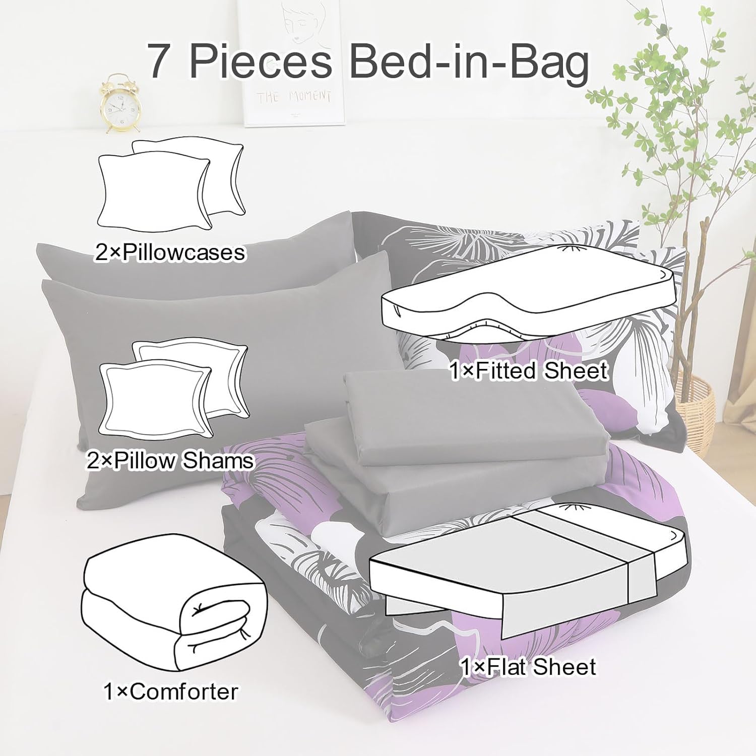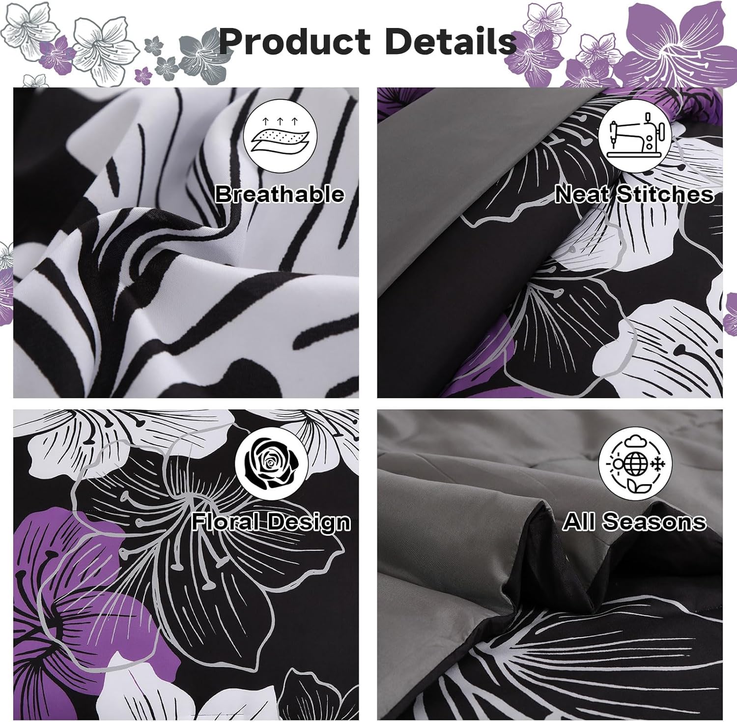 Introducing the Luxudecor Floral Comforter Set King Size, a luxurious 7-piece bed in a bag set that combines elegance with comfort for the ultimate sleeping experience. This stunning purple floral comforter and sheet set is crafted from ultra-soft microfiber fabric, making it the perfect choice for all seasons.